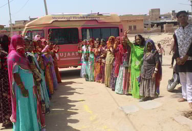 As part of the outreach, sanitary pads were distributed to all participants, ensuring that awareness was accompanied by access to basic menstrual hygiene products. The campaign traveled through villages, labor colonies, tribal regions, and slums, reaching hundreds of women and adolescent girls.